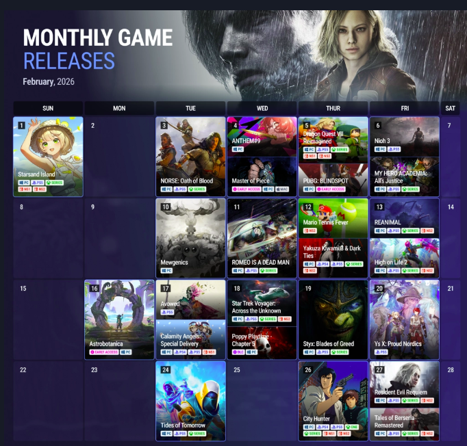 Monthly Game Release Calendar - February 2026