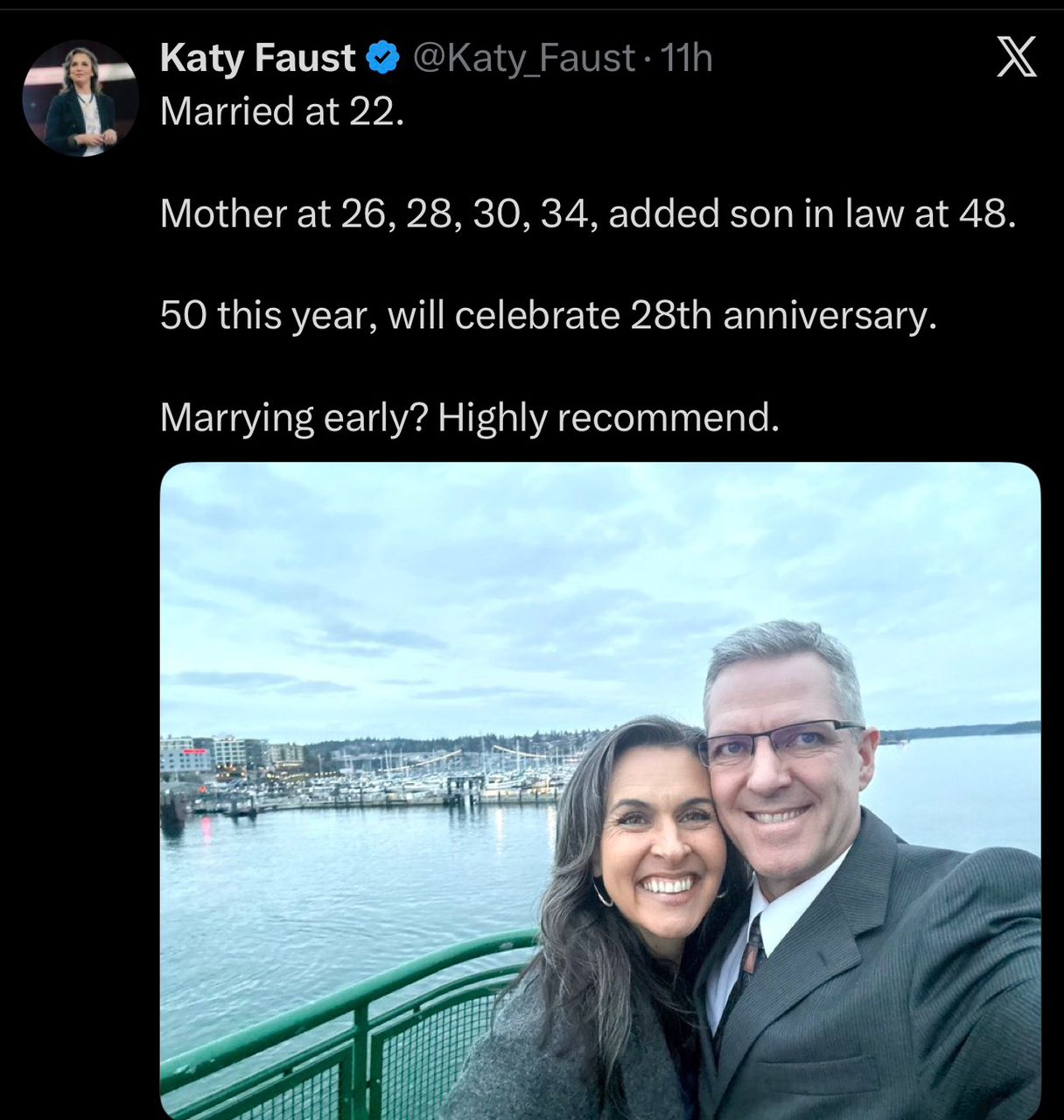 I saw a trending post on X where married couples shared photos and short stories about marrying young. I am a married woman, wife and mother, speaking from lived experience, not advice for everyone. First, you grow together from the start: Marriage early placed both of us in the same learning phase. We built habits around money, work, faith, and conflict at the same time. You avoid trying to merge two fully formed lifestyles later. Studies from the National Marriage Project link shared early rou